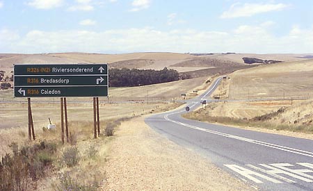 Hermanus durchs Landesinnere. Die Straßen sind gut ausgebaut, es