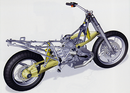 BMW der Paralever-Einarmschwinge, die nun im Rahmen gelagert ist. Die in