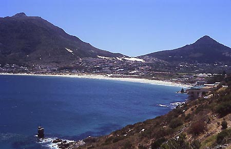Tolle Aussichtspunkte gibt es auf dem Weg von Kapstadt zum "Cape Agulhas" mehr als genug. Hier nur ein Tipp. Fast genau gegenüber der Landspitze "Cape of Good Hope" liegt an der "R44" Rooielsbaai. Ein winziger Ort in traumhafter Lage direkt an der Küste. |
