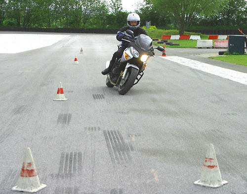 Bremsübung bis in den ABS-Bereich, das Hinterrad wird dabei ganz