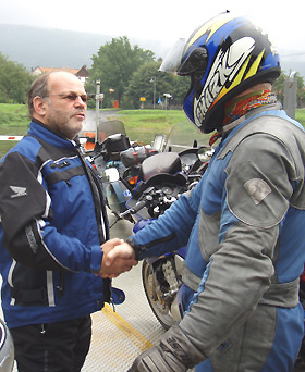 Sozius fahren". Petra aus Obertshausen und Jörg aus Wilschdorf, beide