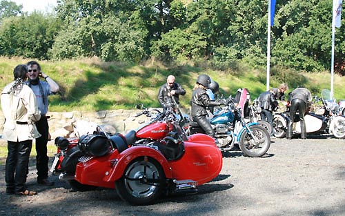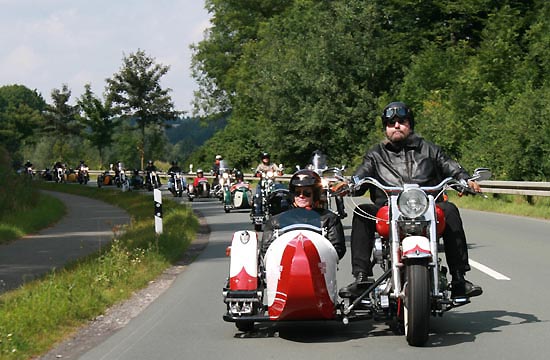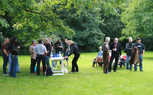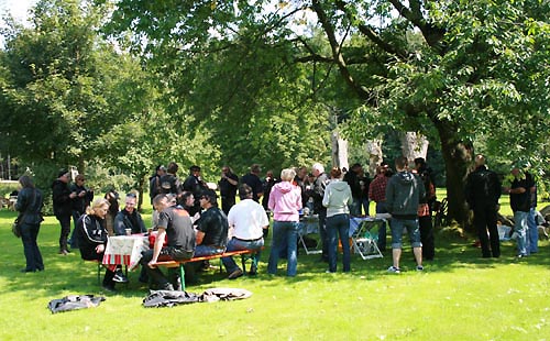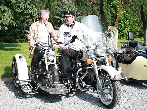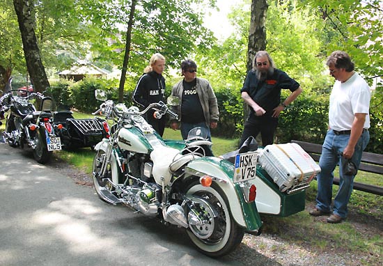 Manni Klocke (Bild Mitte) im Gespräch mit Gespannfahrern |