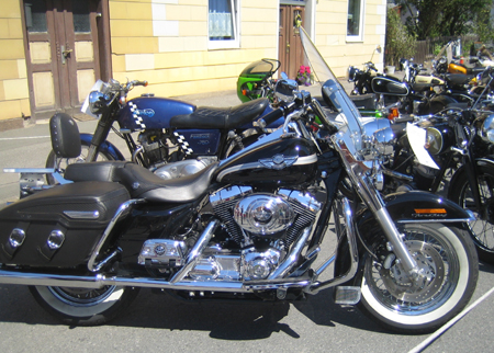 Motorrädern stehen, man erinnerte sich an sein erstes Motorrad, aber